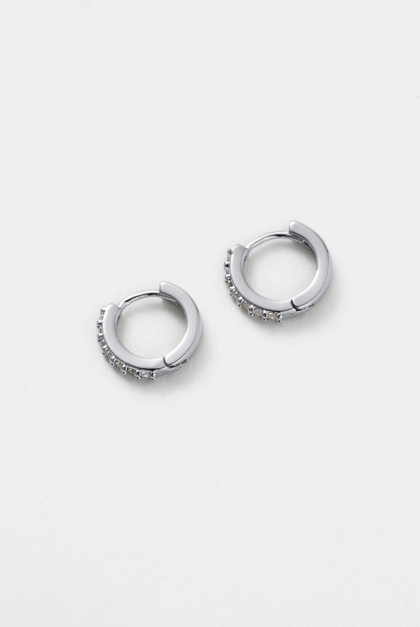 The Ally Huggie is a dainty crystal-studded hoop, designed to add a subtle sparkle to your everyday style. Perfect for stacking or wearing solo, this delicate piece is a timeless addition to any jewellery collection.