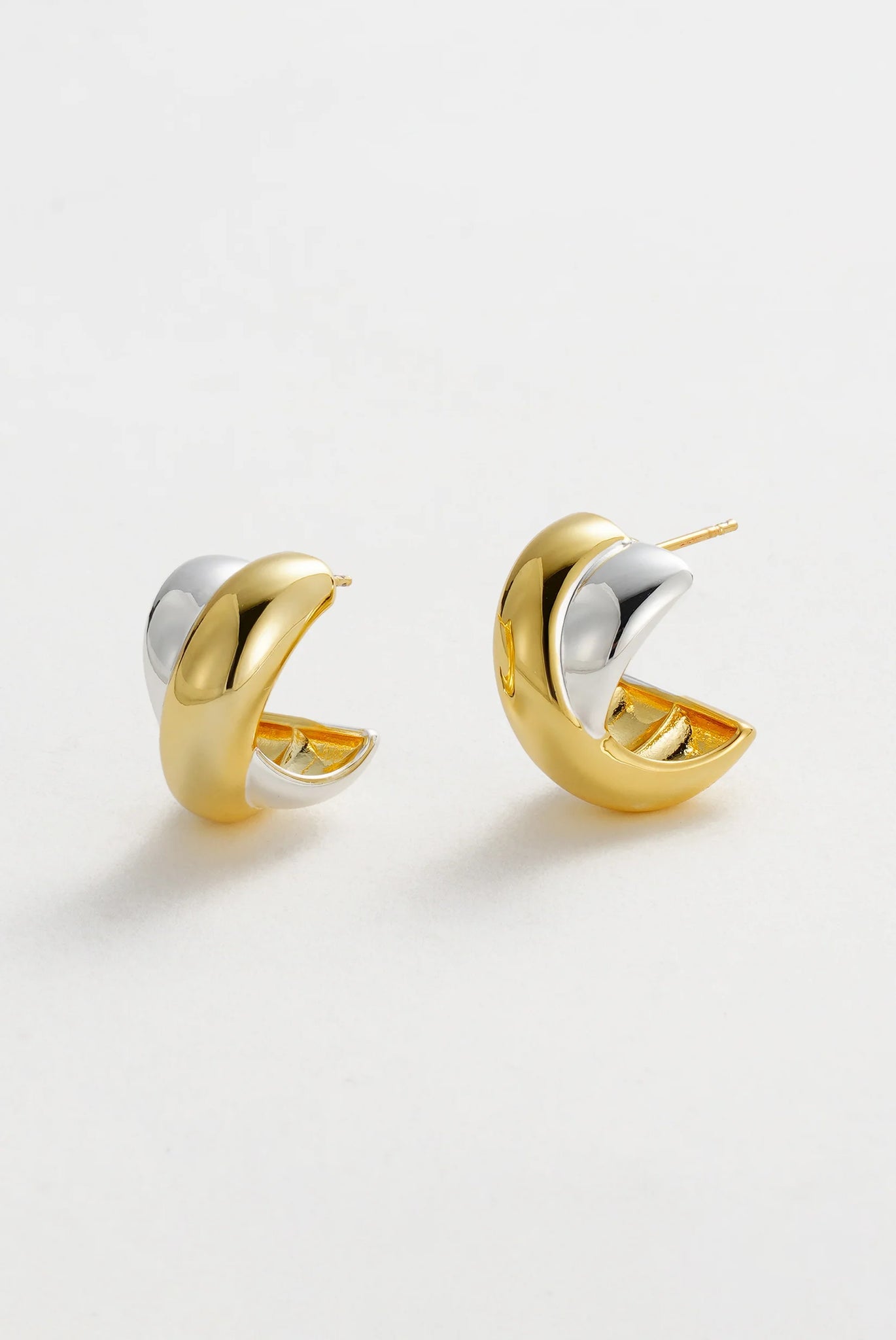 The Freya Hoop blends gold and silver tones in a bold, sculptural design that feels both timeless and modern. Its curved silhouette makes a statement while remaining versatile enough for everyday wear. Pair with theFreya Ringor layer alongside simple studs for a perfectly balanced mixed-metal look.