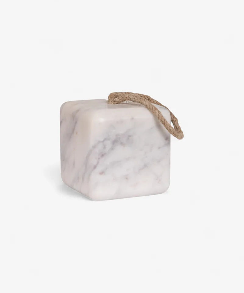 Style Description: Stop the door with this perfectly simple solid marble and wood doorstop.
